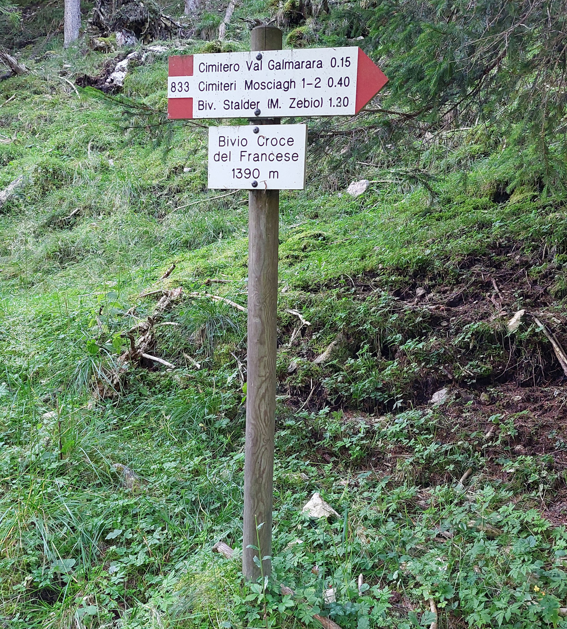 Segnaletica verticale del sentiero 833 Sentiero dei 5 Cimiteri