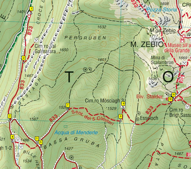 Luoghi di posa del sentiero 833