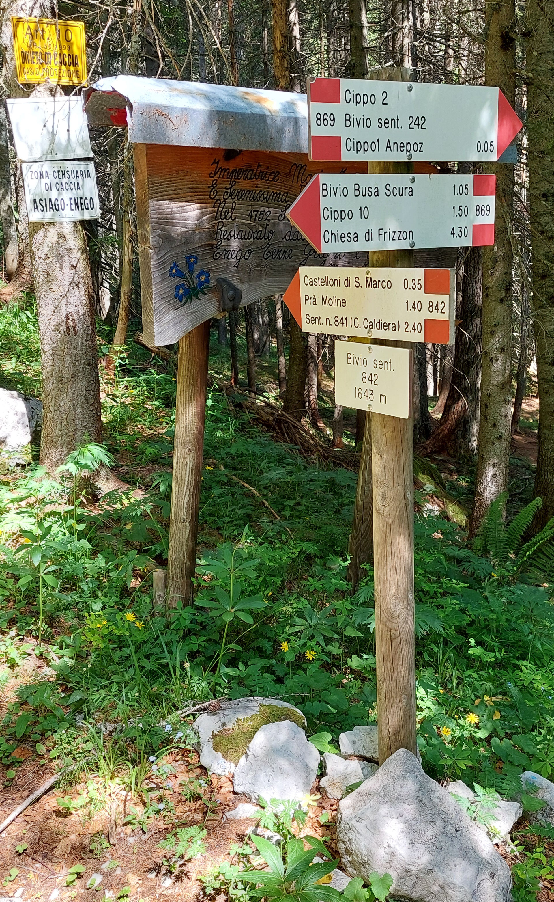 Segnaletica verticale del sentiero 842 Castelloni-Caldiera