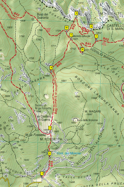 Luoghi di posa del sentiero 845