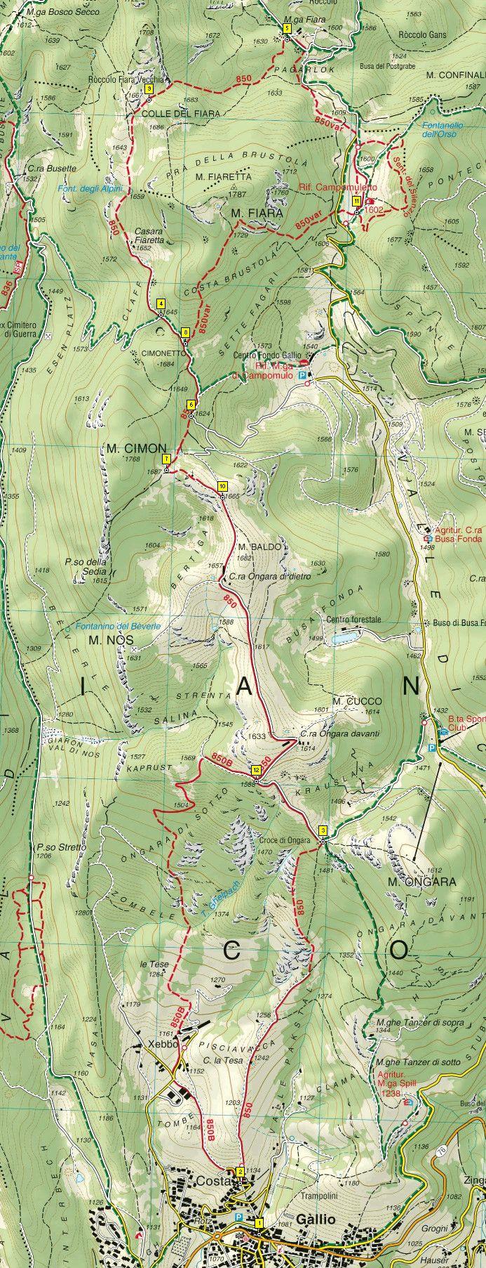 Luoghi di posa del sentiero 850