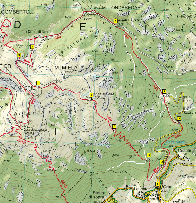 Segnaletica verticale del sentiero 860 Foza-Meletta