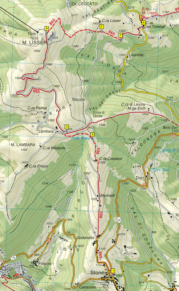 Luoghi di posa del sentiero 865